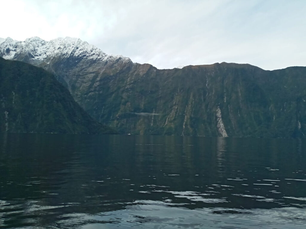 Dag 7: Vandaag gingen we vanuit Queenstown door naar Fiordland in het Zuid- Westen. De eerste stop daar was Doubtful Sound, waar we een cruise deden door de Sound, een soort Fiord maar in plaats van gletjers zorgen rivieren voor de vorm. Doubtful Sound is heel afgelegen en het duurt zo’n 2 uur om op het beginpunt van de cruise te komen.